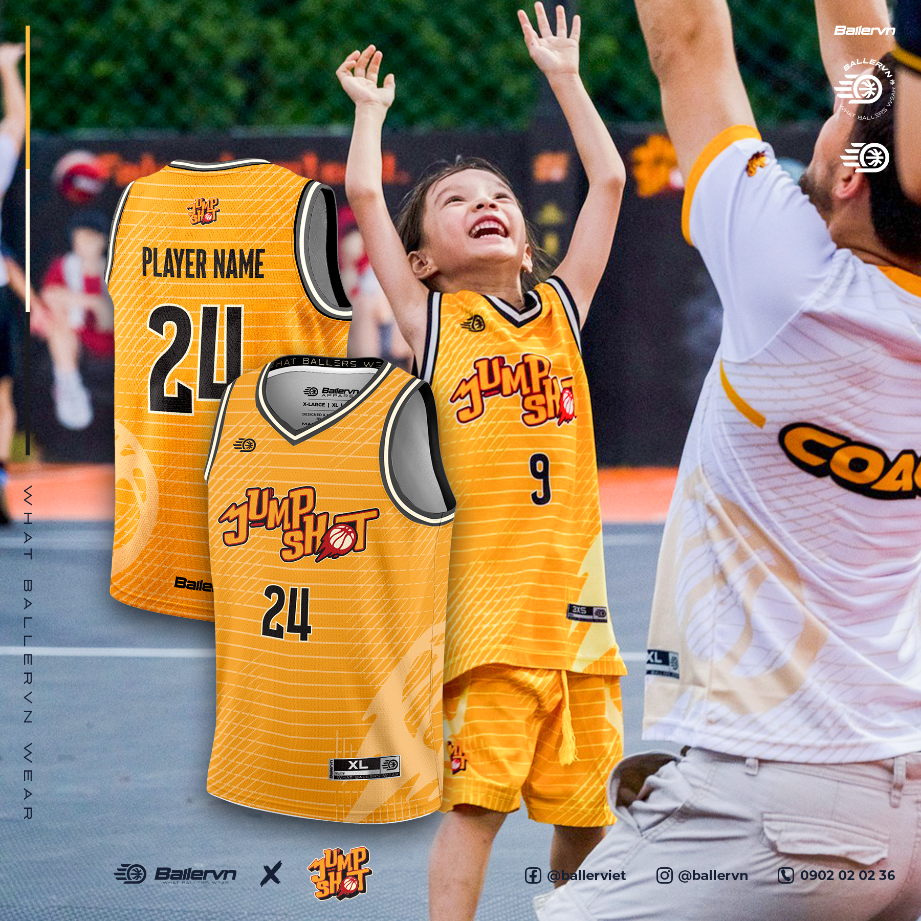 Ballervn cung cấp đồng phục bóng rổ trẻ em cho trung tâm bóng rổ Jumpshot TP.HCM