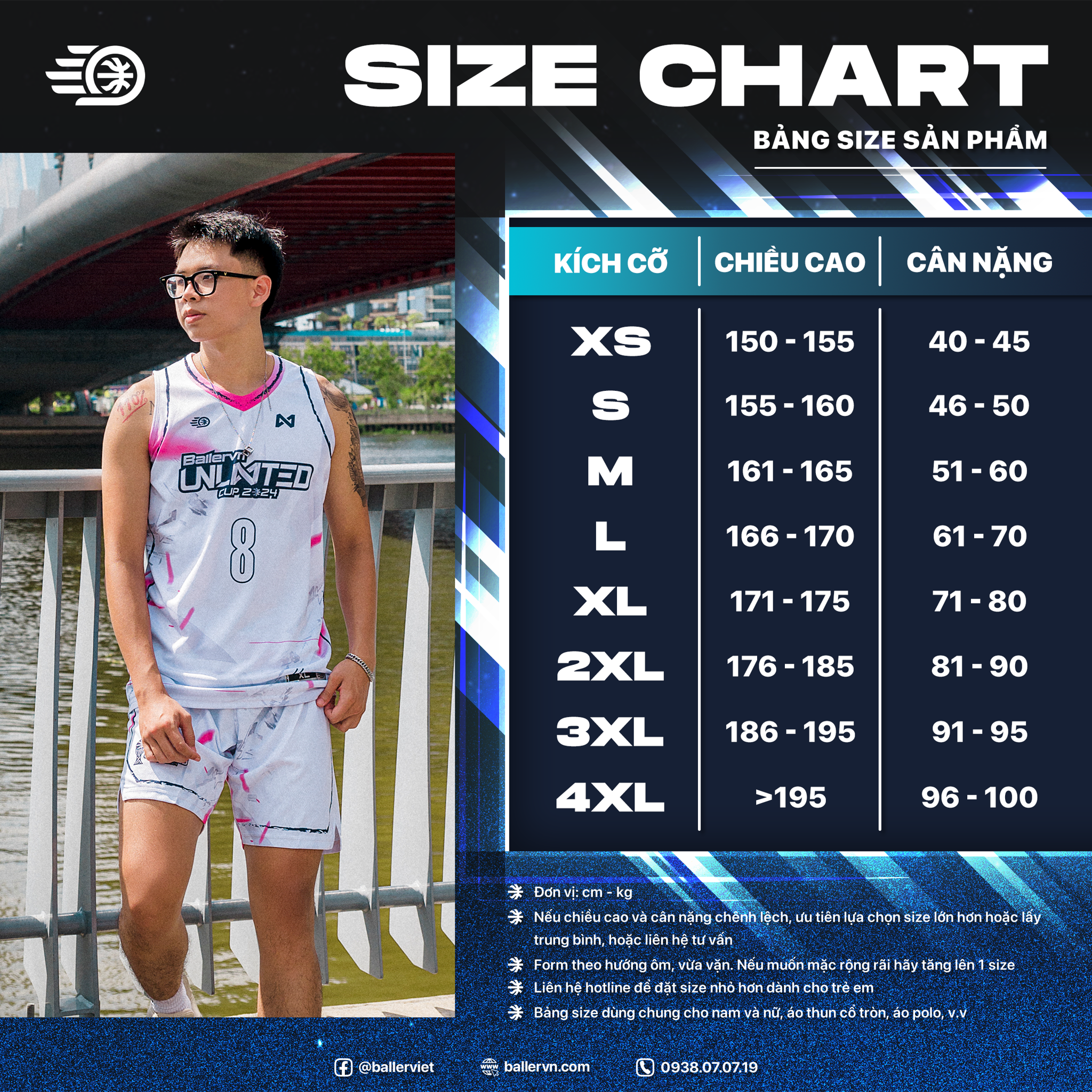 3. Bảng size áo bóng rổ chi tiết tại ballervn: