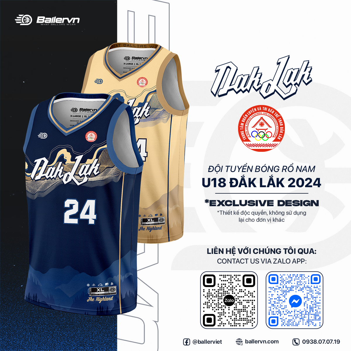 Đồng phục đội tuyển bóng rổ Nam U18 Đắk Lắk tại giải U18 Vô Địch Quốc Gia 2024