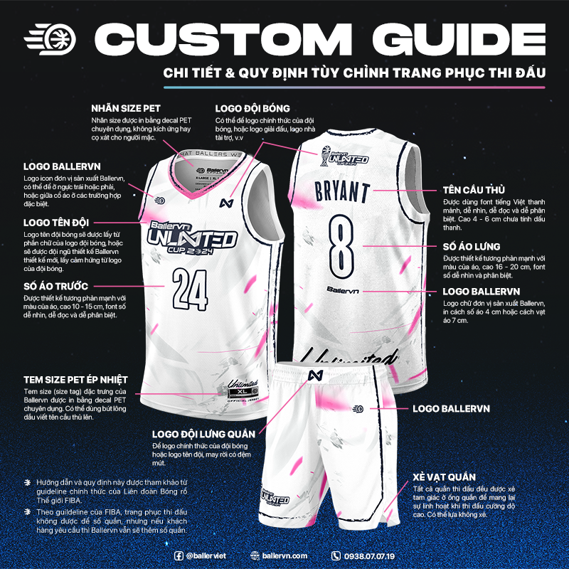 - LIÊN HỆ NGAY CHO BALLERVN ĐỂ CUSTOM THIẾT KẾ VÀ ĐẶT ĐỒNG PHỤC CHO ĐỘI!