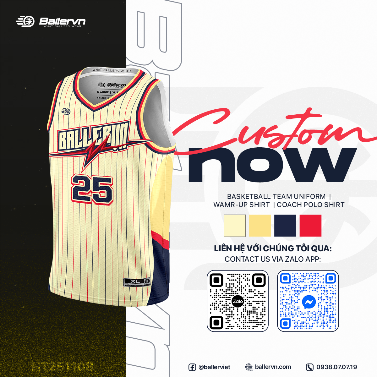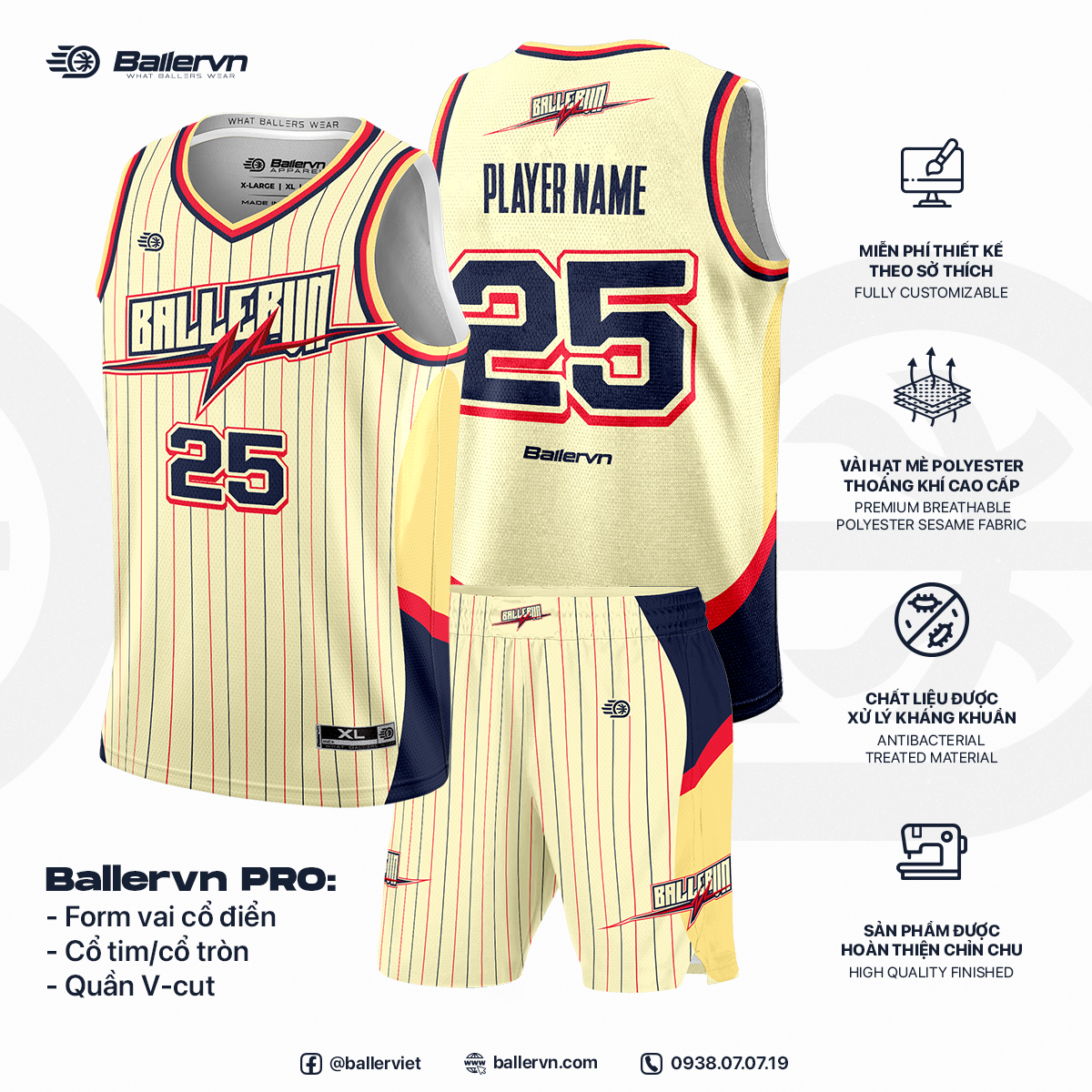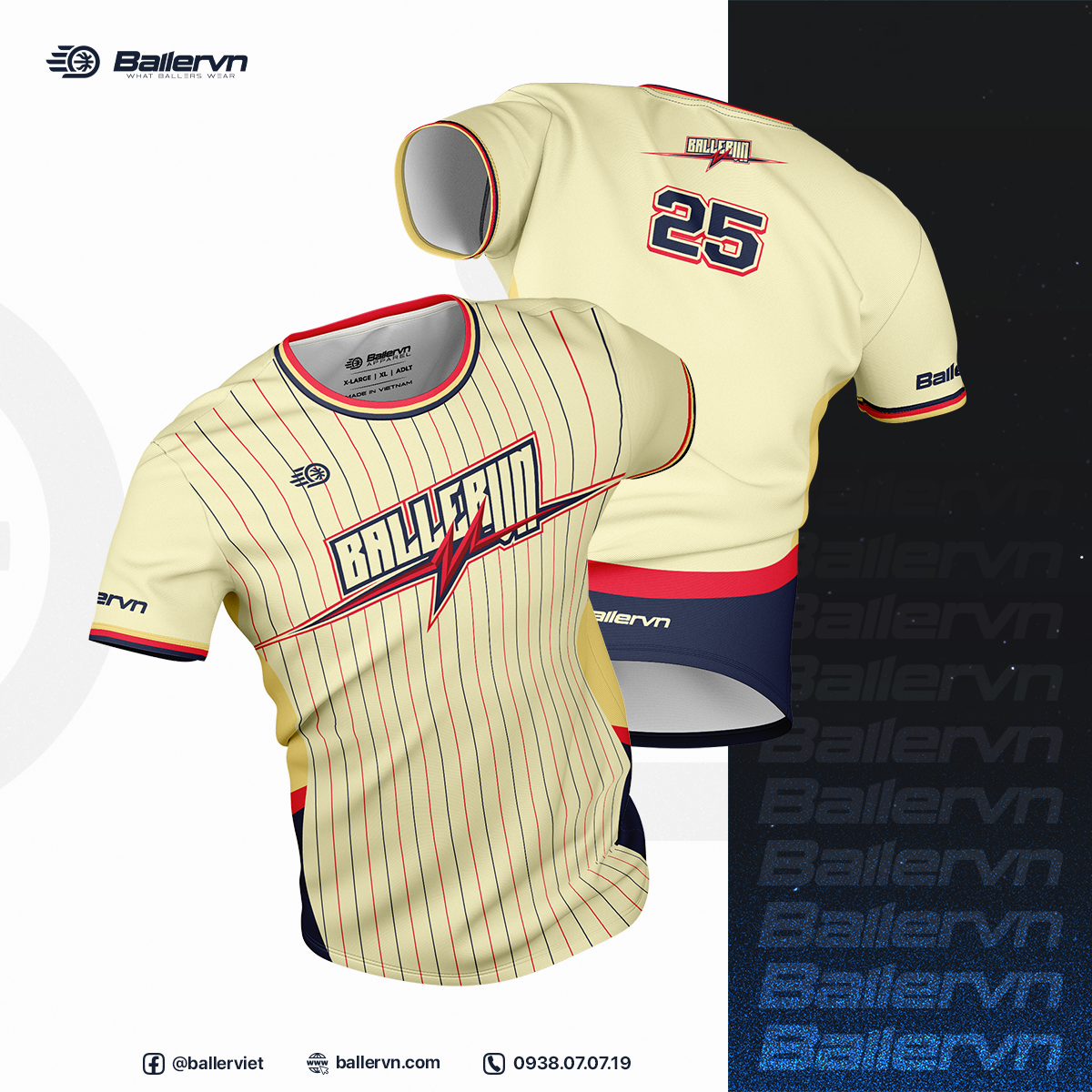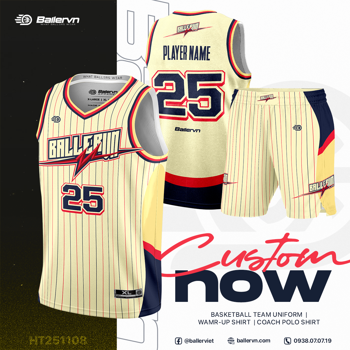 - LIÊN HỆ NGAY CHO BALLERVN ĐỂ CUSTOM THIẾT KẾ VÀ ĐẶT ĐỒNG PHỤC CHO ĐỘI!