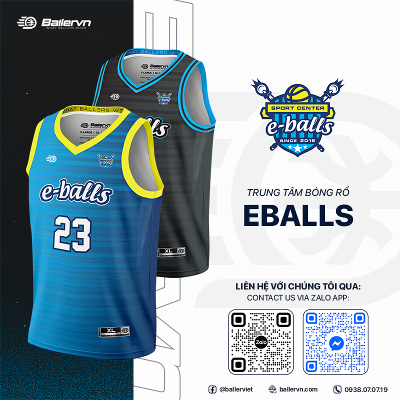 - Mẫu Thiết kế Đồng phục Trung tâm Bóng rổ Eballs do Ballervn sản xuất.